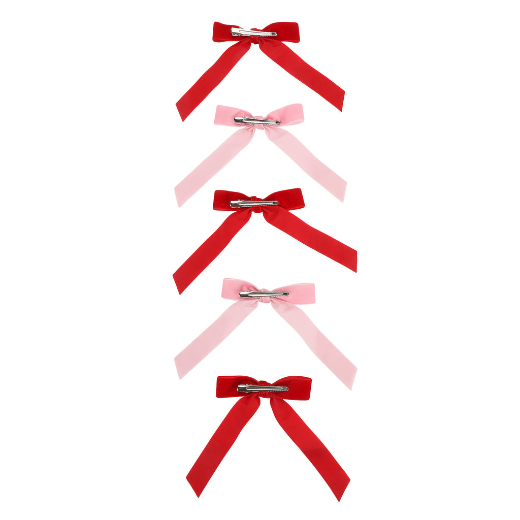 Add a pop of charm to gifts, décor, or party favors with this 5-count set of velveteen bows! Featuring soft velvet in festive shades of pink and red, each bow comes with a sturdy metal clip on the back, making them easy to attach to just about anything—think gift bags, garlands, wreaths, or even your pup’s collar. The ultimate anything bow!