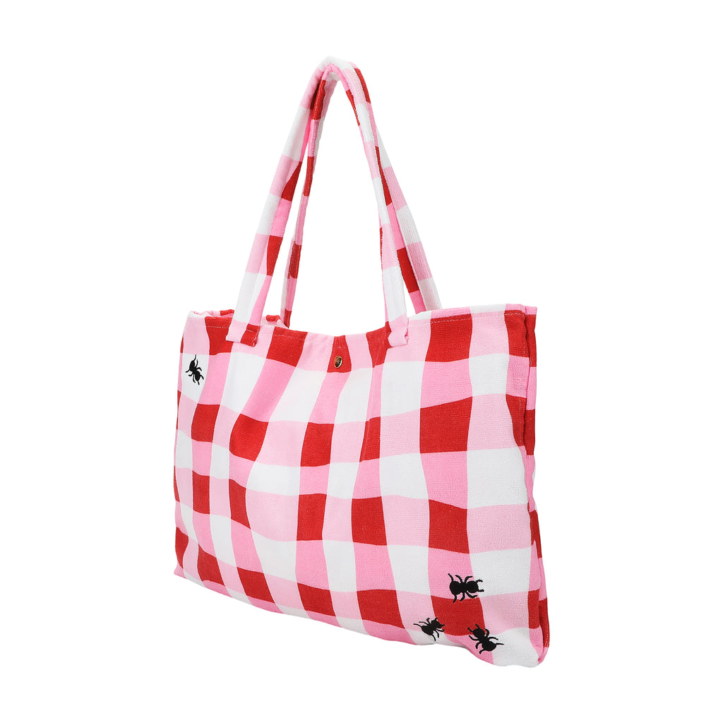 Two essentials, one cute carryall. The Picnic Perfect Gingham 2-in-1 Towel Tote Bag is your ultimate grab-and-go beach, pool, or picnic sidekick. This clever tote transforms into a full-size towel, giving you function and flair in one festive package. Featuring a classic red gingham print with tiny ant details for a wink of whimsy, it’s made from ultra-soft printed poly chenille toweling that’s perfect for sunny days and spontaneous hangs.