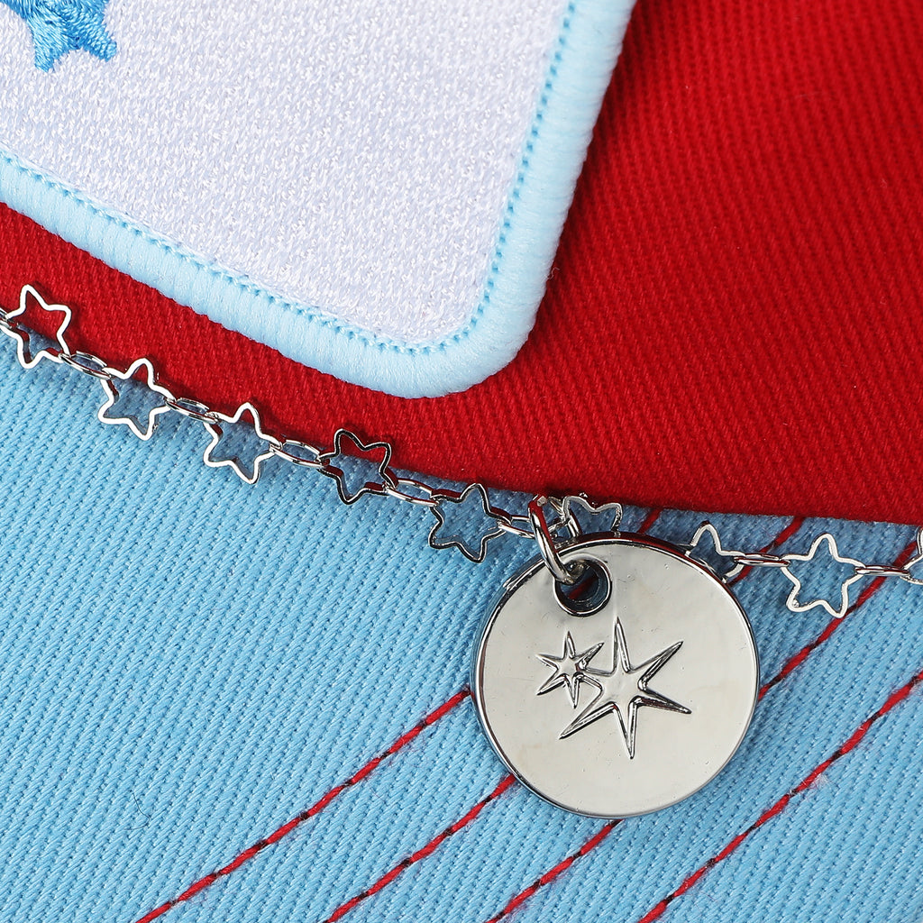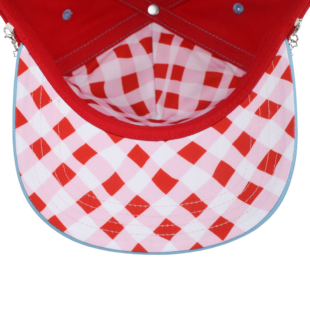 Turn every tailgate, backyard BBQ, and fireworks show into a full-on party moment. The Miss American Pie Trucker Hat brings vintage Americana charm with a Packed Party twist - finished with a playful silver star chain that sparkles with every step. Designed in a nostalgic grandpa-style silhouette, this statement hat features a bold embroidered patch front and center, plus a surprise printed lining under the bill for extra fun.