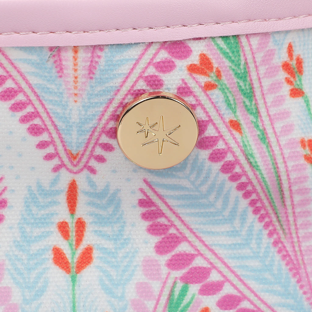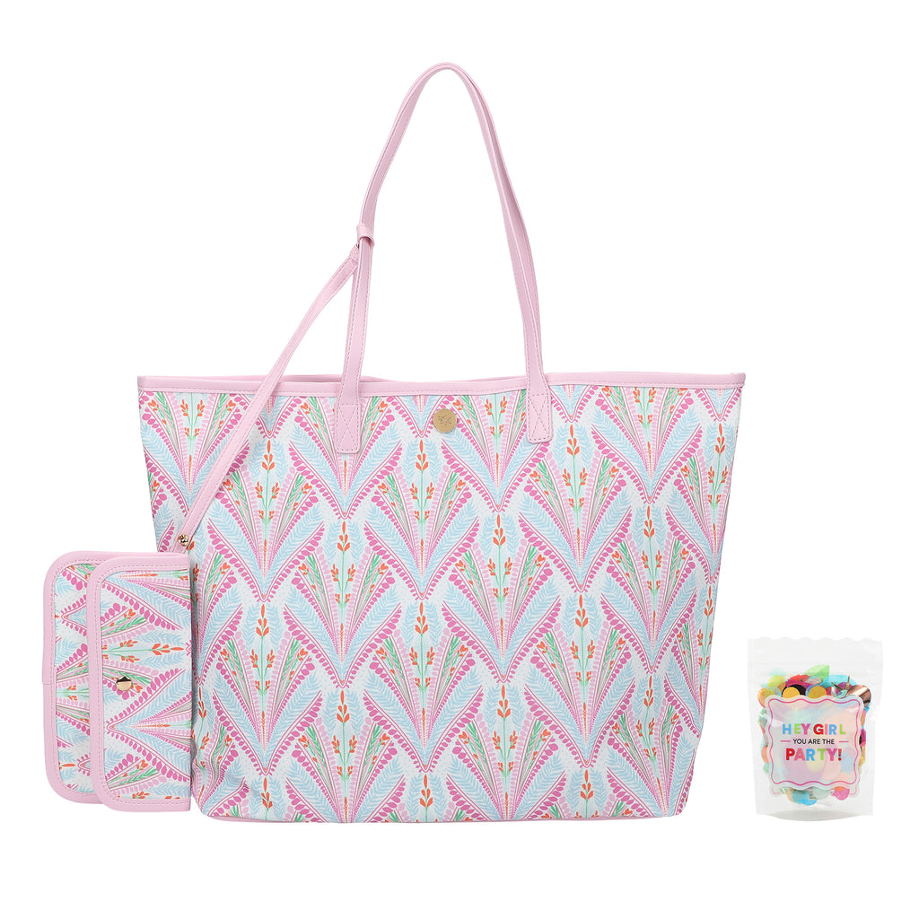 Meet your new go-everywhere essential: the Petals & Plumes Everyday Tote with Wristlet. Designed in durable printed coated canvas, this roomy tote features a chic allover pattern, leatherette straps and binding, and a detachable matching wallet pouch for easy organization on the go.