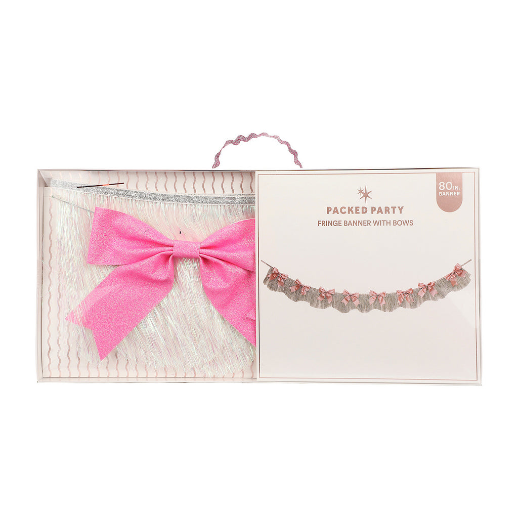 Add some charm to any celebration with the Packed Party Beautiful Bows Fringe Reusable Garland! Featuring delicate fring and pink 3-D bows, this darling garland brings just the right amount of sweetness to your space. Perfect for birthdays, showers, or a little everyday magic, it's a whimsical way to dress things up because pretty bows never go out of style!