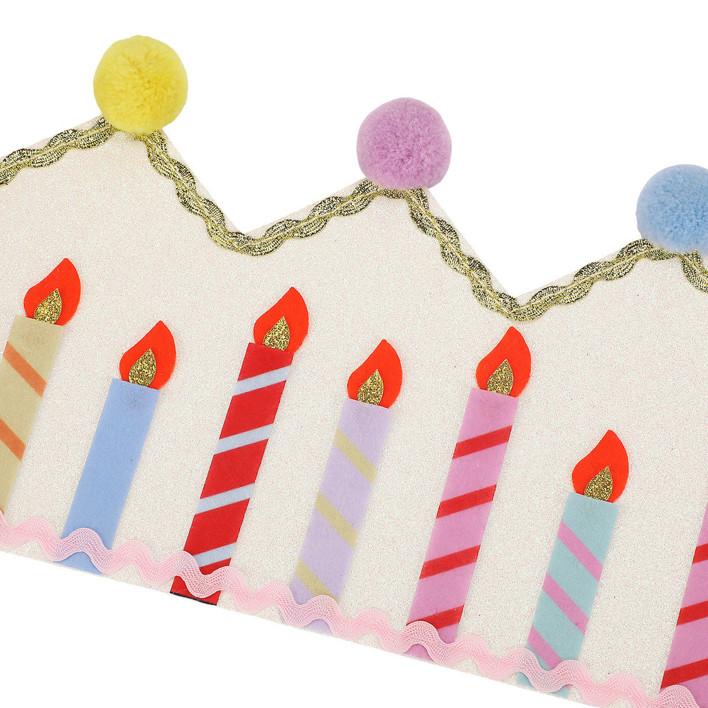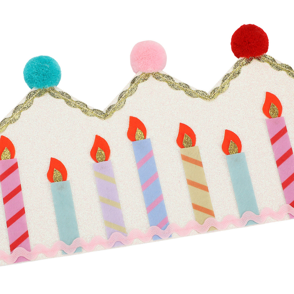 Top off your birthday with a little extra sparkle! This party-perfect crown is made for birthday girls (and guys!) of all ages who want to stand out while making their wish. Featuring shimmering metallic fabrics, colorful birthday candles, and topped with playful pom poms, it’s a total showstopper. Lightweight and comfy with an adjustable satin grosgrain tie, this festive accessory guarantees your celebration shines as bright as you do. Go on, wear the crown, it’s your day to shine!