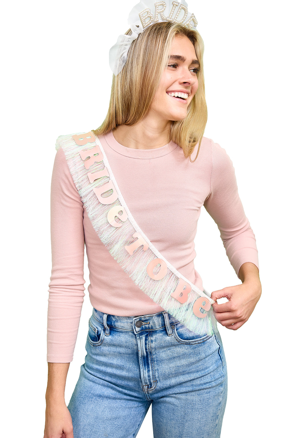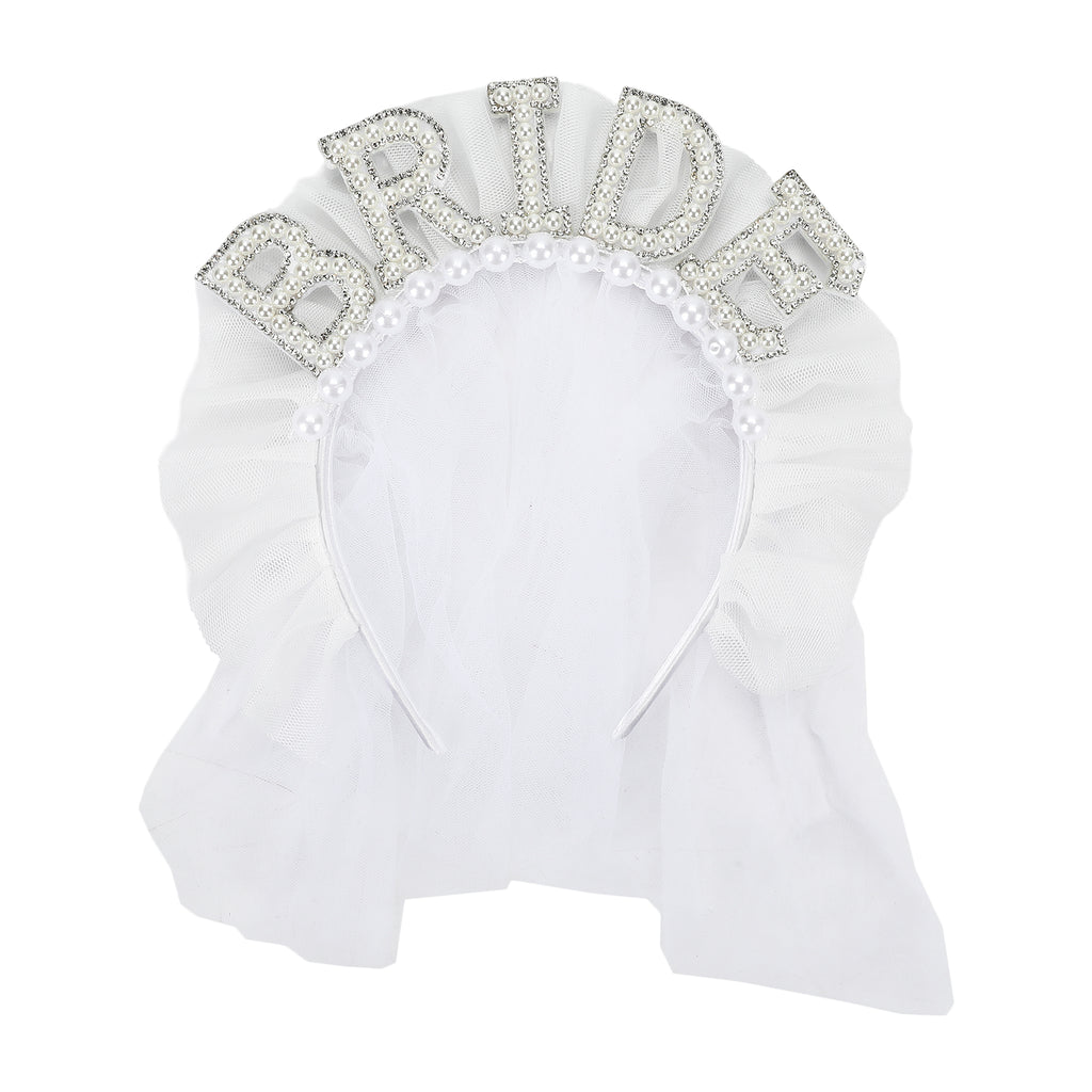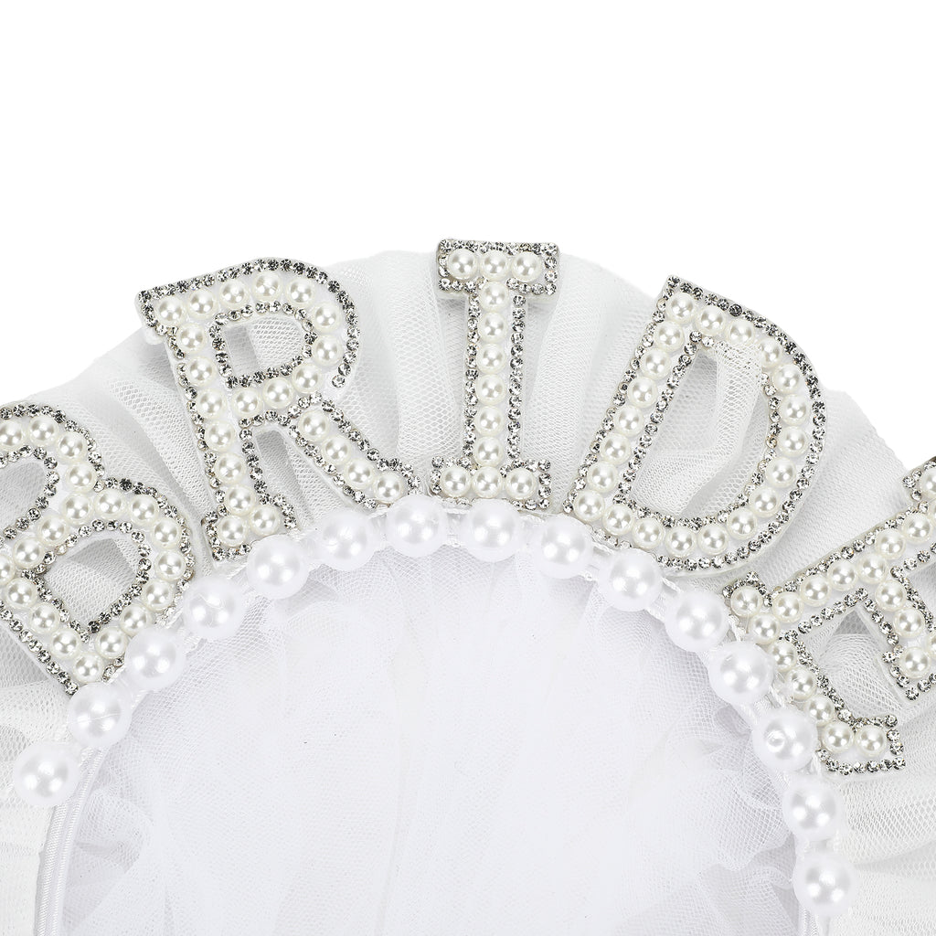 When you’re the bride, subtle just isn’t the vibe. Statement BRIDE lettering with glitter and pearl-style details Fluffy white tulle for a mini-veil look Satin ribbon–wrapped headband for comfortable wear.
